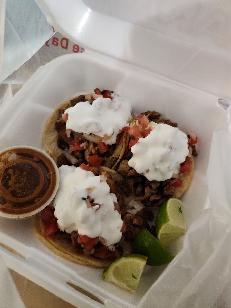 My new favorite place!!!! Such great prices for such high quality! I will never go to another place for tacos! Everything I have tried here has been top-notch quality and flavor. The street tacos are just heavenly! If i could afford it I would come here everyday! The service is fast and the people are so super helpful and friendly. Very relaxing chill atmosphere. If you have anxiety and love tacos THIS IS THE SPOT!!! They also have hamburgers too!